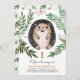 Cute Watercolor Hedgehog Greenery First Birthday Invitation