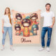 This personalised blush pink fleece blanket features cute watercolor Japanese kokeshi dolls.