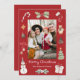 Celebrate the season with this cute watercolor “Merry Christmas” family photo holiday card featuring a festive red background. Your vertical photo is surrounded by hand-painted Christmas illustrations — a candy cane, holly berries, stocking, bear, pinecone, Christmas tree, present, snowman, jingle bells with a red bow, and a holiday ornament. “Merry Christmas” appears in a white handwritten script with your family name below. The back includes an extra photo and space for a personal holiday message. Perfect for families with children or anyone who loves a cozy, cheerful Christmas design.