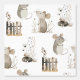 Cute Watercolor Mice Boho Neutral Nursery Wallpaper
