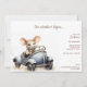 Stylish and fun, theses cute watercolor little mouse driving a blue car kid birthday party invitations are perfect for your little one. The design features a cute hand painted watercolor mouse who is smiling as he sits in a blue car and tex that can be customised to fit your party planning needs. The back features a polka dot pattern over a changeable background colour.