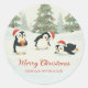 Cute Watercolor Penguins Christmas Forest Classic Round Sticker