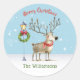 Cute Watercolor Reindeer Christmas Tree Card Classic Round Sticker
