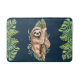 Cute Watercolor Sloth & Tropical Leaves Bath Mat
