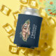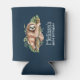 Birthday / event can cooler with a cute watercolor design featuring a cute sloth hanging onto a tree branch surrounded by green tropical leaves. Dark blue background.