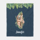 Cute Watercolor Sloth & Tropical Leaves Fleece Blanket