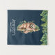 Tapestry with a cute watercolor design featuring a cute sloth hanging onto a tree branch surrounded by green tropical leaves.