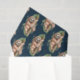 Tissue paper with a cute watercolor design featuring a cute sloth hanging onto a tree branch surrounded by green tropical leaves. Dark blue background.