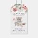 Cute, arctic-themed baby shower gift tags featuring a watercolor illustration of a snow leopard surrounded by winter white flowers, red holly berries, and lush green leaves. Personalise the snow leopard baby shower gift tags with your thank you message, the mother-to-be's name, and date of the baby shower. The back of the winter baby shower gift tag displays a matching winter floral bouquet. Designed to coordinate with our Cute Watercolor Baby Animals Winter Baby Shower collection.