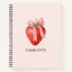 Cute Watercolor Strawberry Bow Coquette Monogram Notebook