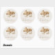 These cute baby shower stickers feature a sweet brown watercolor teddy bear asleep on a cloud above the words "baby shower" in brown handwriting script. Personalise the text with the name of the mum-to-be and the date in light brown sans serif font on a beige background.