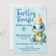 Dive into the ocean of joy with our Turtley Terrific Birthday Invitation! 🎉 This adorable design features a charming blue and green baby turtle donning a festive party hat, set against a serene blue watercolor background. Perfect for young boys and girls, this whimsical invitation sets the tone for a delightful underwater celebration. The "Turtley Terrific" headline adds a splash of fun, making it an ideal choice for your little one's special day.