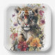 Cute Watercolor Wild Tiger Cub Kids Birthday Paper Party Plates features a cute watercolor tiger surrounded by wild flowers. Perfect for kids birthday party celebrations, baby showers and more. Designed by Evco Studio. For coordinating items view www.zazzle.com/store/evcostudio