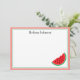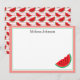 Our chic personalised stationery flat cards feature a watermelon with red and green accent border with your name or monogram on the top in script lettering. Reverse side reveals a fun watermelon print.