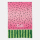 Cute watermelon kitchen towel has green striped rind on the bottom and pink with black seeds at the top. A faux pink ribbon separates the two patterns. Personalise with your name for a towel that's uniquely yours!