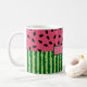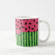Cute watermelon coffee mug has green striped rind on the bottom and pink with black seeds at the top. Personalise with your name in the banner for a mug that's uniquely yours!