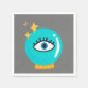 Weird cute design of a turquoise blue crystal ball with an eye. Psychic new age magic theme.
