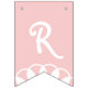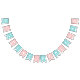 Welcome the precious new baby to your lives with this cute personalised birth announcement bunting banner designed with a lace print on each flag. The original pretty pastel pink and blue colour can be customised with any colour your heart desires. Each individual flag can be personalised by adding a different letter, or left blank so you can announce your own special event. Flat printed image, NOT actual lace.