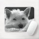 If you love dogs, you will love this mousepad / mousemat. There is a black and white image of an adoreable Westie (West Highland White Terrier) dog on the front of the mousemat / pad with the words 'I love you...' in white lettering just underneath the main image. This mousepad is the perfect gift for that special person in your life. It is a great birthday, Christmas present for someone special.