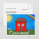 Illustration by Suki’s features a simple colourful red house under a bright sun and rainbow. An adorable Blue Russian kitten and a cute white flowers patch with a bee surround the house. Customise address number on house, next to wooden door to match your new address. Also customise and personalise message in the back of the postcard, let friends and family know about your new address. Congratulations on your new home!
