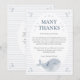 Cute whale boy baby shower thank you card in dusty blue. This under the sea baby shower thank you card template features a hand-drawn whale with stars on a pastel blue striped background and an modern thank you text example for family and friends in a modern elegant grey typeface. Backside with placeholder for mum-dad-to-be address and contact details. Explore sea inspired design templates with cute sea creatures, nursery decor and gift ideas made with ocean love and a gentle sea breeze by © y.BEE SEA #zazzlemade #babyshower #babywhale #oceanthemedbabyshower