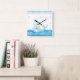 Cute Whale in Ocean Cartoon Character Little Boy Square Wall Clock