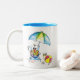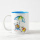 Cute Whimsical Bird on the Beach Two-Tone Coffee Mug