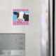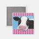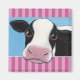 Cute whimsical cow magnet would make the perfect gift or stocking filler for any cow lover! Design features a black and white cow with brown eyes peering over pink stripes. Artwork © Lisa Marie Robinson. All Rights Reserved.