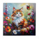 Cute Whimsical Cat, Flowers and Butterflies Tile