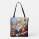 Cute Whimsical Cat, Flowers and Butterflies Tote Bag