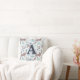 Cute Whimsical Cat Pattern, Blue and Grey Monogram Cushion