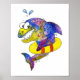 Cute Whimsical Colourful Shark in Float Poster