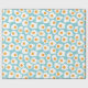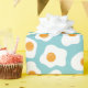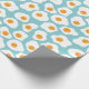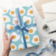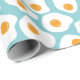 This cute wrapping paper features a whimsical pattern of egg yolks in teal blue and yellow.