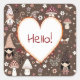 Cute Whimsical Fair Gnomes and Mushrooms Hello Square Sticker