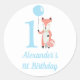 Cute Whimsical Fox & Balloon Blue 1st Birthday Classic Round Sticker