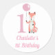 Cute Whimsical Fox & Balloon Pink 1st Birthday Classic Round Sticker