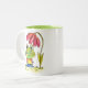 Cute Whimsical Green Frog Under a Red Flower Two-Tone Coffee Mug