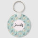 A key chain with an adorable pattern. Colourful rainbows in a pink, blue and green colour scheme.