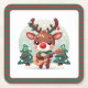 Cute Whimsical Reindeer with guitar Square Paper Coaster
