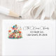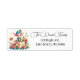 Adorable festive Christmas elf sitting on a present surrounded by flowers watercolor illustration return address labels.