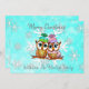 Christmas card with two owls snuggling on a branch with a pretty teal and white snowflakes background. Add your names and personalised message in the personalise area.