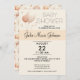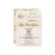 This invitation features a whimsical design with soft pastel oatmeal beige, and orange hues. The front is easily customisable with all the important details of your event, while the back delights with a charming pattern of stars, pennants, balloons, rainbows, and storks, adding an extra touch of sweetness.