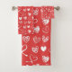 Cute White And Red Hearts Pattern Sketch Bath Towel Set
