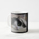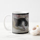 Cute White Black Cat Photo Monogram Name Black Coffee Mug