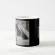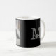 Cute white and black cat photo monogram name black coffee mug.