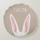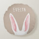 Cute White Bunny Ears On Beige With Kid's Name Round Cushion