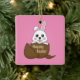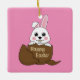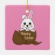 Cute White Bunny in Chocolate Egg Happy Easter Ceramic Ornament