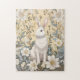 Cute White Bunny Pastel Yellow Floral Jigsaw Puzzle