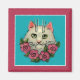 Cute white cat, pink roses magnet