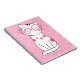 This girly , cute and modern notebook design features a cute white cat cartoon with eyeglasses on pink and white polka dots pattern background and has a place for you to add your name in lovely typography. Personalise this product by adding your name at the bottom . this will be the perfect feline stationery design for any cat lover.